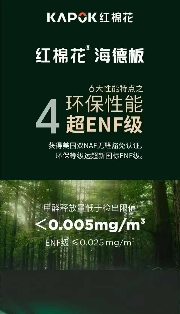 此外,紅棉花海德板還有其專(zhuān)屬激光防偽標(biāo)“KAPOK ENF 海德板”。這一防偽標(biāo)就如同是它身份的獨(dú)特象征,彰顯著其品質(zhì)的卓越與不可復(fù)制。