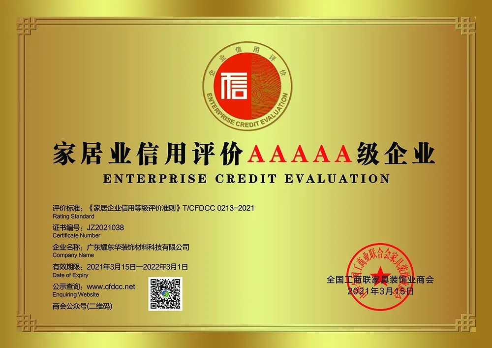 重磅|耀東華獲評“家居業(yè)信用評價AAAAA級企業(yè)”