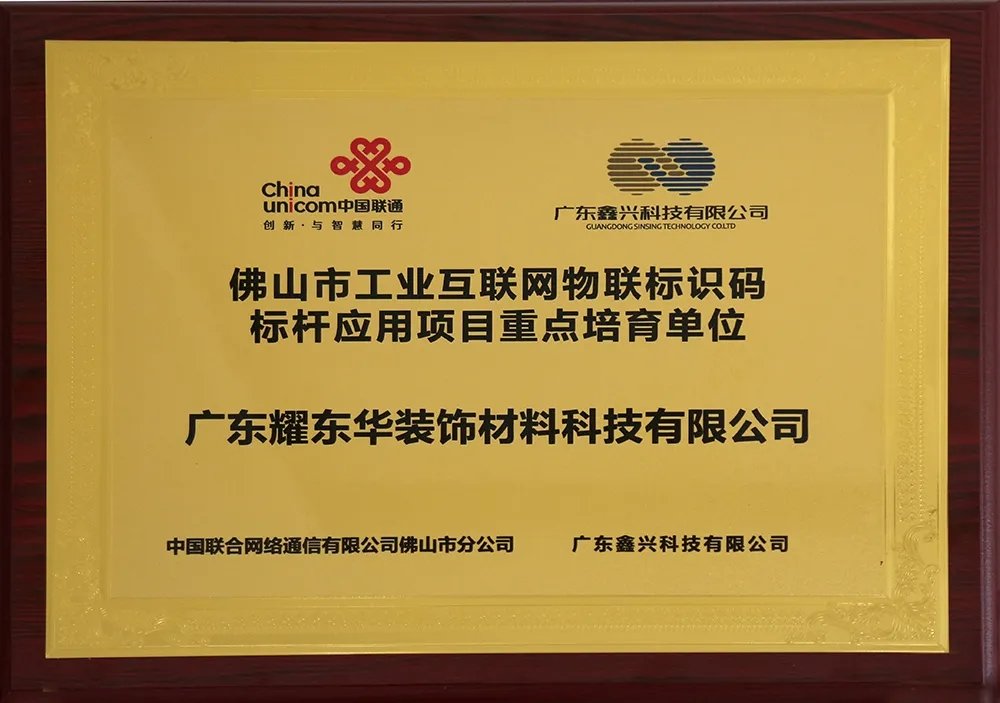 耀東華被授予“佛山市工業(yè)互聯(lián)網(wǎng)物聯(lián)標(biāo)識碼標(biāo)桿應(yīng)用項目重點培育單位”