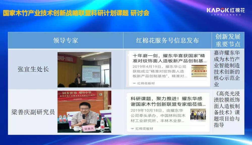 2021年7月25日上午,國家木竹產(chǎn)業(yè)技術(shù)創(chuàng)新戰(zhàn)略聯(lián)盟科研計(jì)劃課題研討會(huì)議在耀東華佛山總部正式召開。耀東華公司董事長曾敏華、副總經(jīng)理兼運(yùn)管總監(jiān)吳惠娟率領(lǐng)耀東華精英團(tuán)隊(duì)熱情接待中國林科院木材工業(yè)研究所所長、國家木竹產(chǎn)業(yè)技術(shù)創(chuàng)新戰(zhàn)略聯(lián)盟副理事長傅峰研究員;中國林科院木材工業(yè)研究所副所長、國家木竹產(chǎn)業(yè)技術(shù)創(chuàng)新戰(zhàn)略聯(lián)盟秘書長呂斌研究員等一行專家與貴賓。