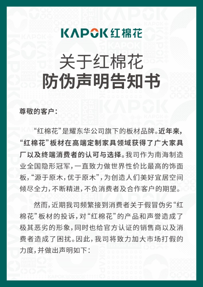 關(guān)于紅棉花防偽聲明告知書(shū)