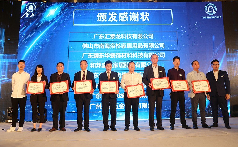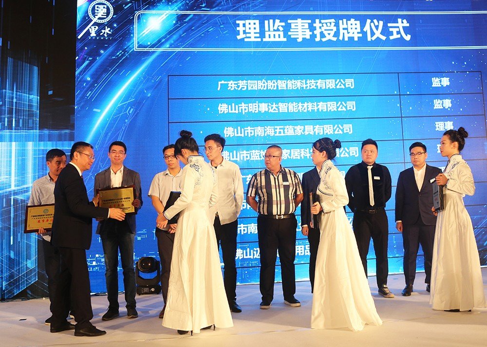 耀東華公司董事長曾敏華作為頒獎嘉賓,為廣東里水智能家居產(chǎn)業(yè)協(xié)會第一屆理事長副秘書長單位、理事單位授牌。