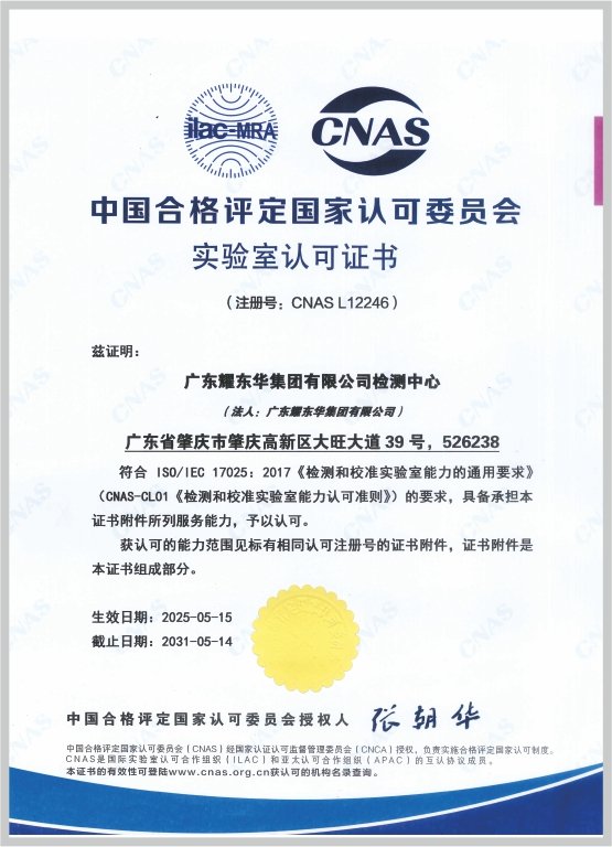 中國合格評定國家認可委員會實驗室認可證書
