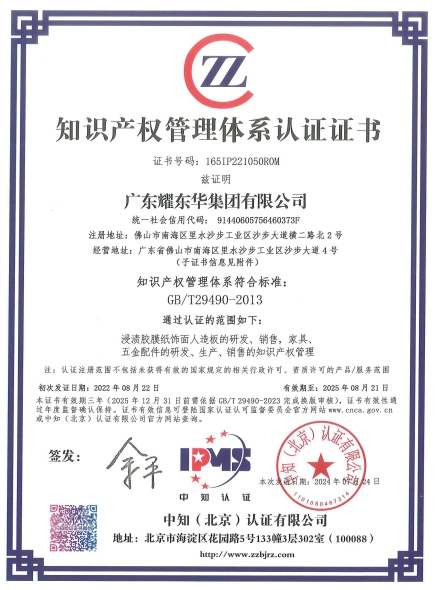 知識產(chǎn)權(quán)管理體系認證證書