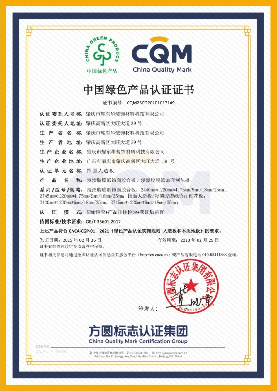 中國綠色產(chǎn)品認證證書