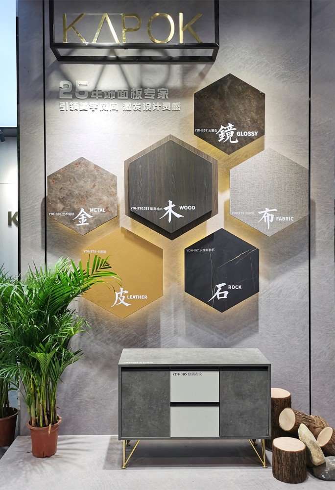 在耀東華的展館內(nèi),您將會(huì)發(fā)現(xiàn)紅棉花品牌今年新上線:膚感系列、防火板系列、抗菌防霉板系列、柔性三胺系列、低壓發(fā)熱智能板系列等5個(gè)功能性?xún)?yōu)質(zhì)新品,驚艷亮相。