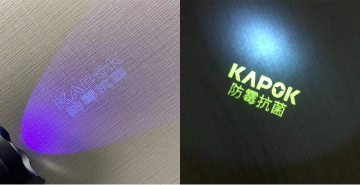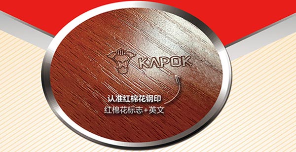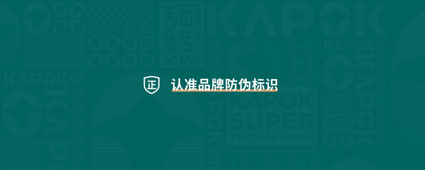 所有紅棉花飾面板,均有紅棉花專屬激光防偽LOGO:KAPOK或KAPOK+防霉抗菌